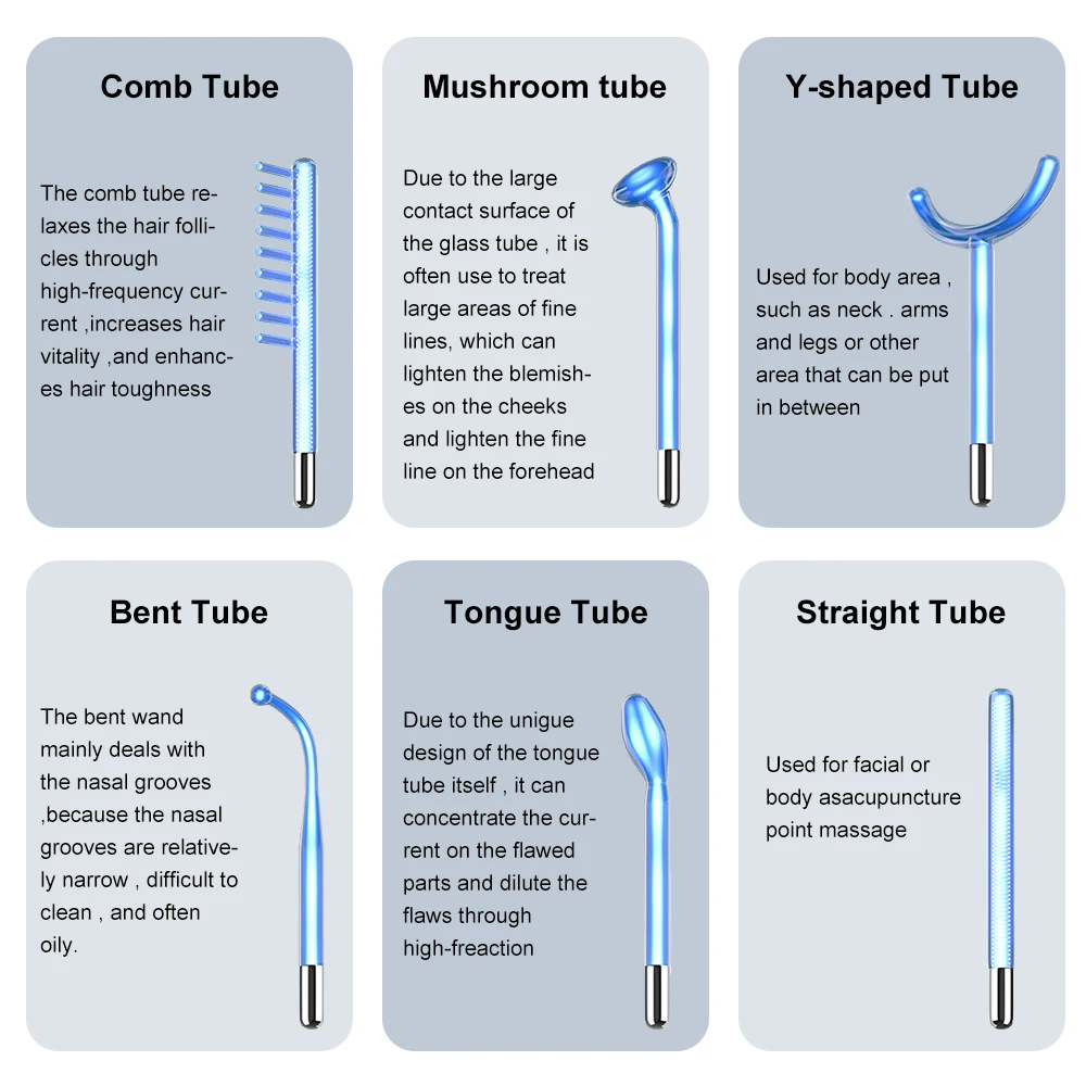 • 💡 Multiple Electrode Attachments: Includes various glass electrodes to target different areas of the face and body.